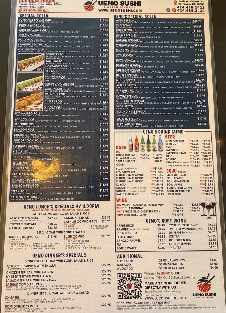 Welcome to Ueno Sushi & Asian Izakaya, a hidden gem nestled in Torrance, CA, where the essence of Japanese izakaya culture comes alive. This cozy establishment offers a thoughtfully curated menu, perfect for both sushi enthusiasts and casual diners.